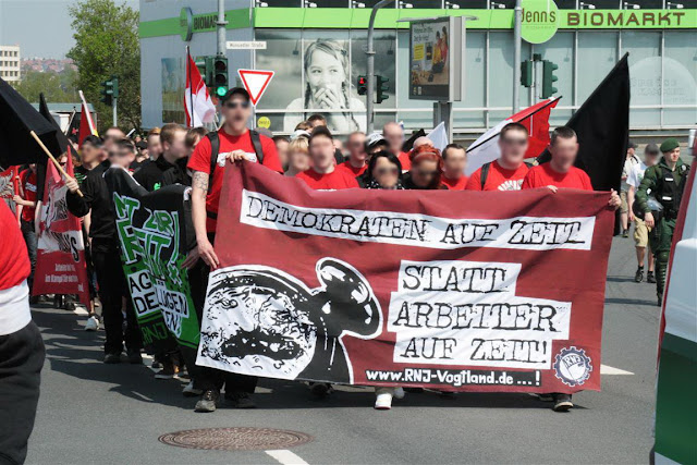 В этом году произошёл качественный и количественный рост революционно-националистических первомайских демонстраций. Революционные НС и националисты вышли на демонстрации по многим странам Европы, и это придает нам уверенности в том, что наш радикальный синтез националистических и социалистических идей не только смог преодолеть барьер политической реакционности и узколобого шовинизма в националистической среде, но и стать весомой силой на первомайских демонстрациях по всей Европе.После двухмесячных истерик политиканов, буржуазных антифа-космполитов и региональной прессы, революционные НС Германии вышли на первомайскую демонстрацию. Попытки запрета их шествия, были отменены высшим административным судом. Около 500 активистов, автономных националистов и революционных НС, выкрикивали лозунги против капиталистической эксплуатации трудящихся. "В будущем, наше сопротивление капиталистической системе будет продолжаться, и наш голос будет услышан не только в день труда, но и в каждый день года!"